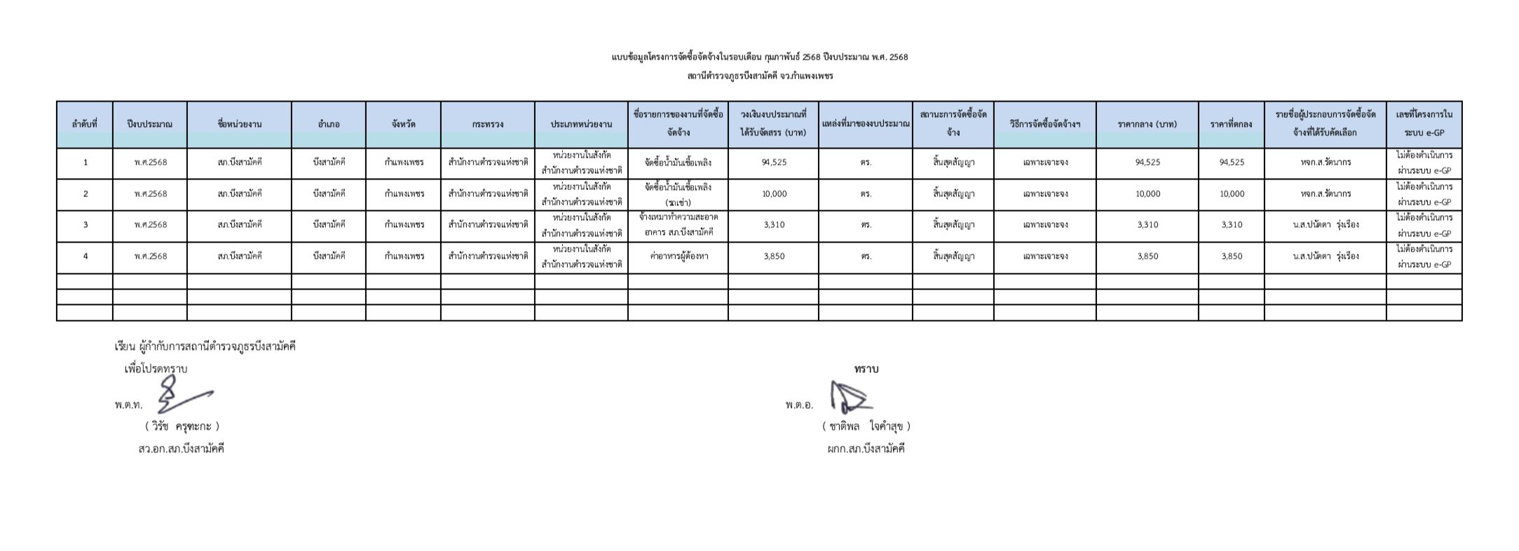 แบบสรุปผลการดำเนินการจัดซื้อจัดจ้าง กุมภาพันธ์ 2568