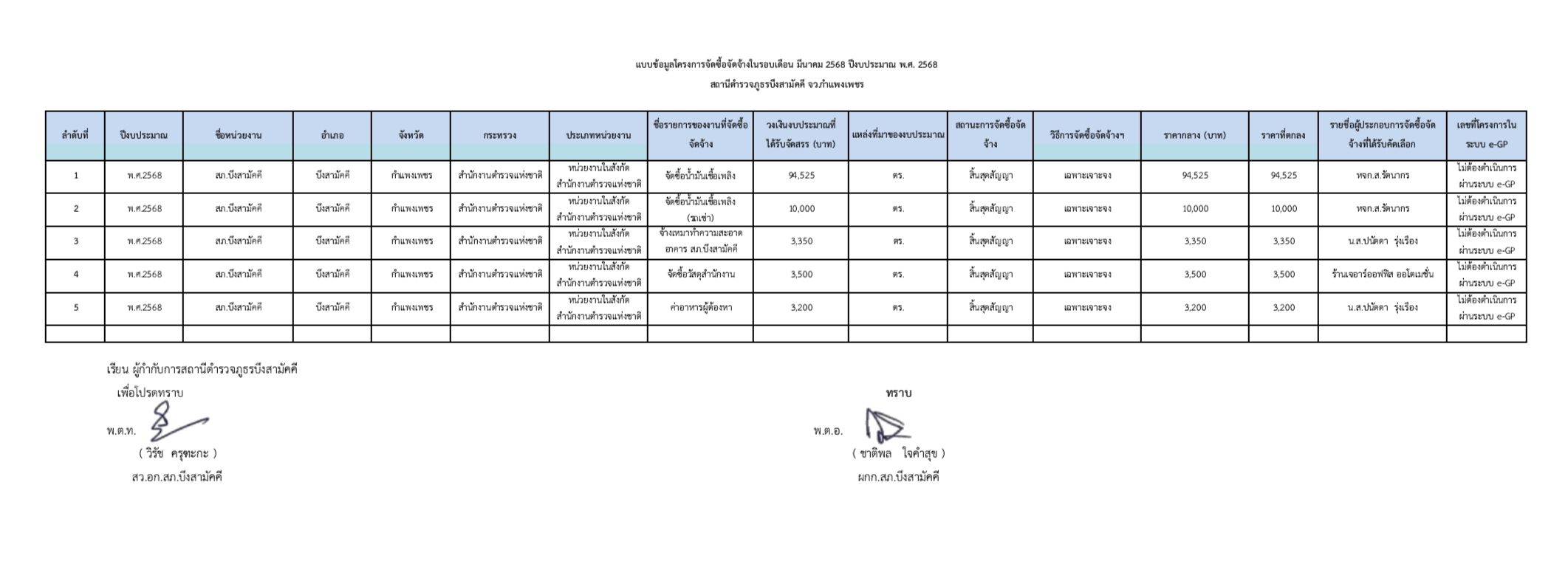 แบบสรุปผลการดำเนินการจัดซื้อจัดจ้าง มีนาคม 2568