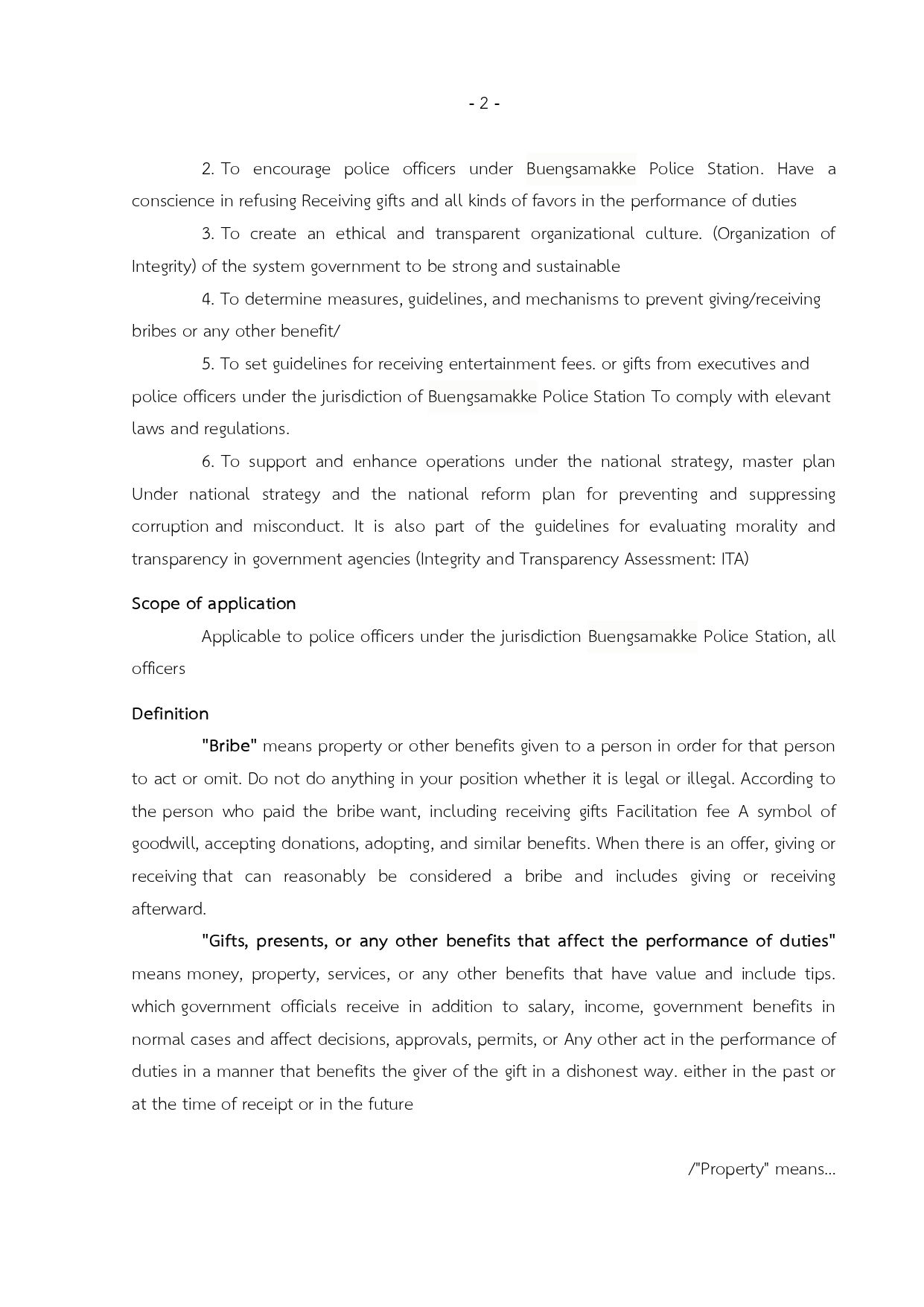 ประกาศนโยบายต่อต้านการรับสินบน ภาษาอังกฤษ
