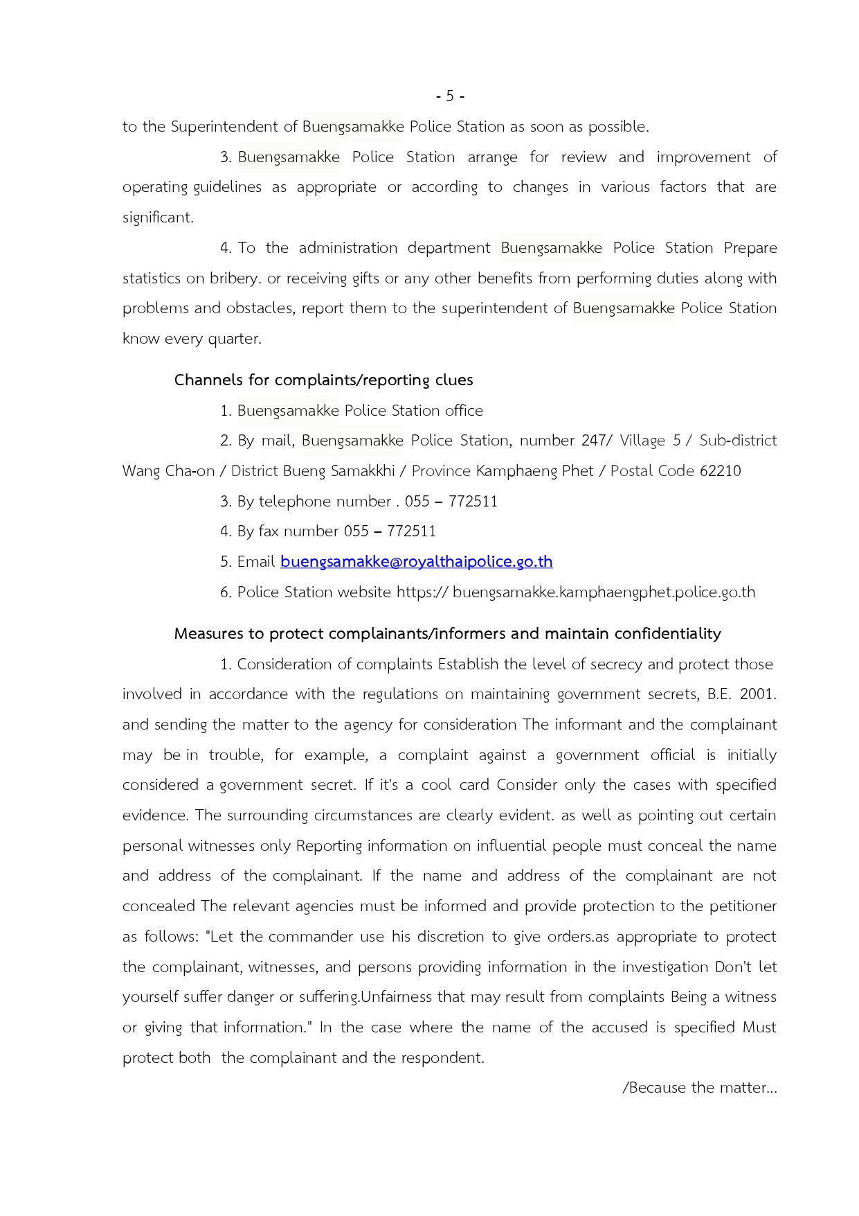 10.1 การดำเนินการเพื่อป้องกันการทุจริต