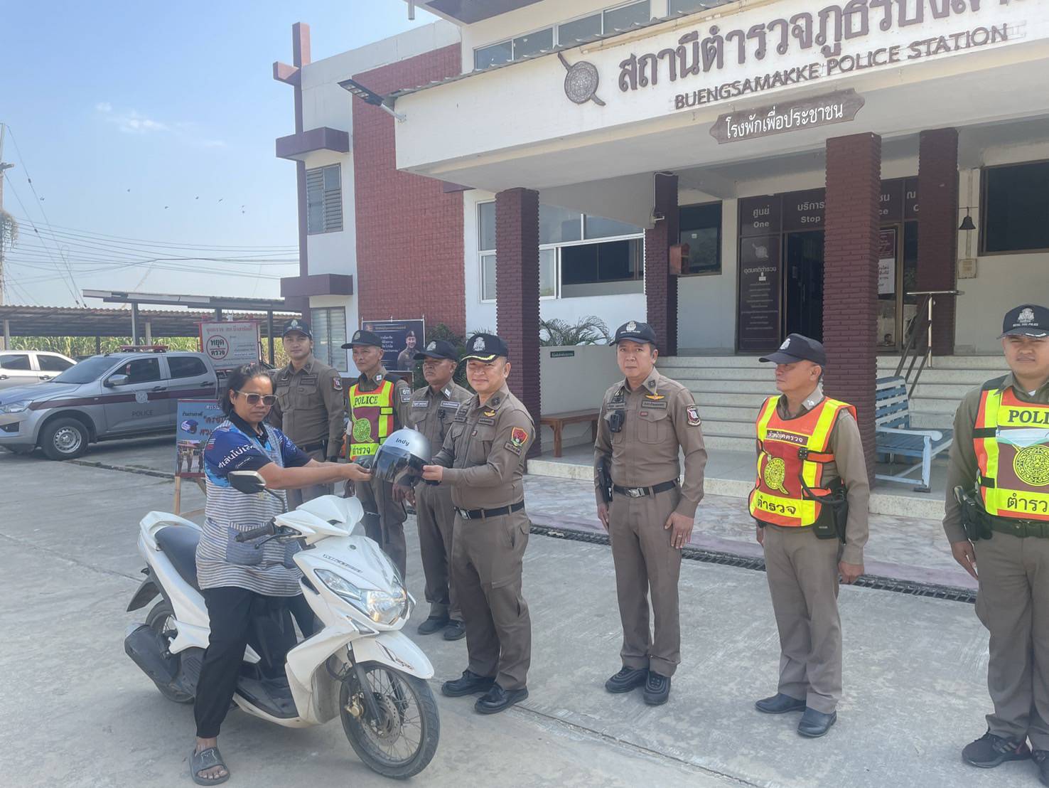 เมื่อวันที่ 3 มกราคม 2568 เวลา 10.00 น. พ.ต.อ.ชาติพล ใจคำสุข ผกก.สภ.บึงสามัคคี พร้อมด้วย พ.ต.ท.เกื้อกูล เหล่ารอด สวป.สภ.บึงสามัคคี ได้จัดกิจกรรมครอบครัวตำรวจใส่ใจ สวมหมวกนิรภัย 100% โดยมีข้าราชการตำรวจ สภ.บึงสามัคคี ร่วมกิจกรรม เพื่อเป็นตัวอย่างให้กับประชาชน โดยดำเนินการติดตั้งป้ายประชาสัมพันธ์การสวมหมวก 100% บริเวณทางเข้า สภ.บึงสามัคคี และได้มอบหมวกนิภัยให้กับข้าราชการตำรวจ และครอบครัวที่ใช้รถจักรยานยนต์