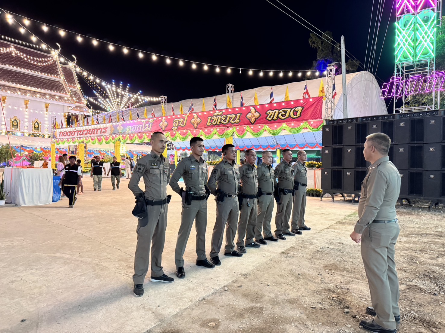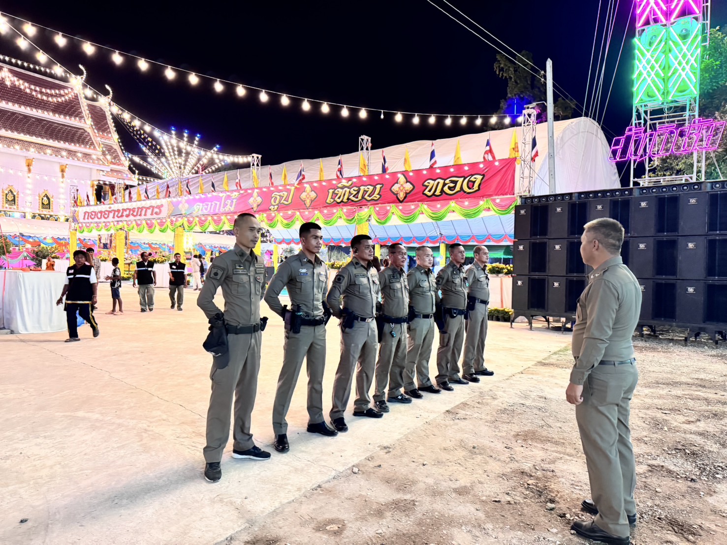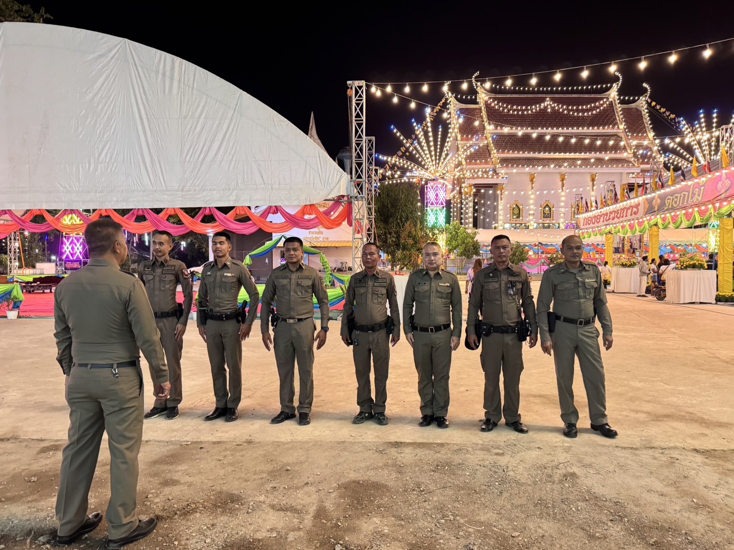เมื่อวันที่ 27 ธันวาคม 2567 เวลา 19.00 น. ภายใต้การอำนวยการของ พ.ต.อ.ชาติพล ใจคำสุข ผกก.สภ.บึงสามัคคี มอบหมายให้ ร.ต.ต.วิชัย รัตนวรสุทธิ์ รอง สว.(ป.)สภ.บึงสามัคคี เป็นหัวหน้าชุดรักษาความปลอดภัย ปฏิบัติหน้าที่รักษาความปลอดภัยภายในงานปิดทองฝังลูกนิมิต ณ วัดศรีทองพัฒนาราม ต.บึงสามัคคี อ.บึงสามัคคี จ.กำแพงเพชร เหตุการณ์ปกติ
