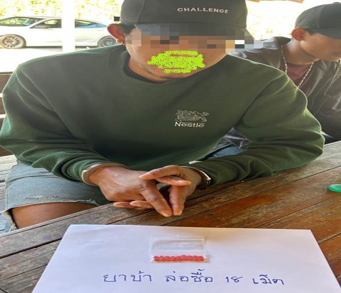 ได้จับกุม นายเอ นามสมมุติ ผู้ต้องหา พร้อมด้วยของกลาง คือ ยาบ้า จำนวน 18 เม็ด (ล่อซื้อ)