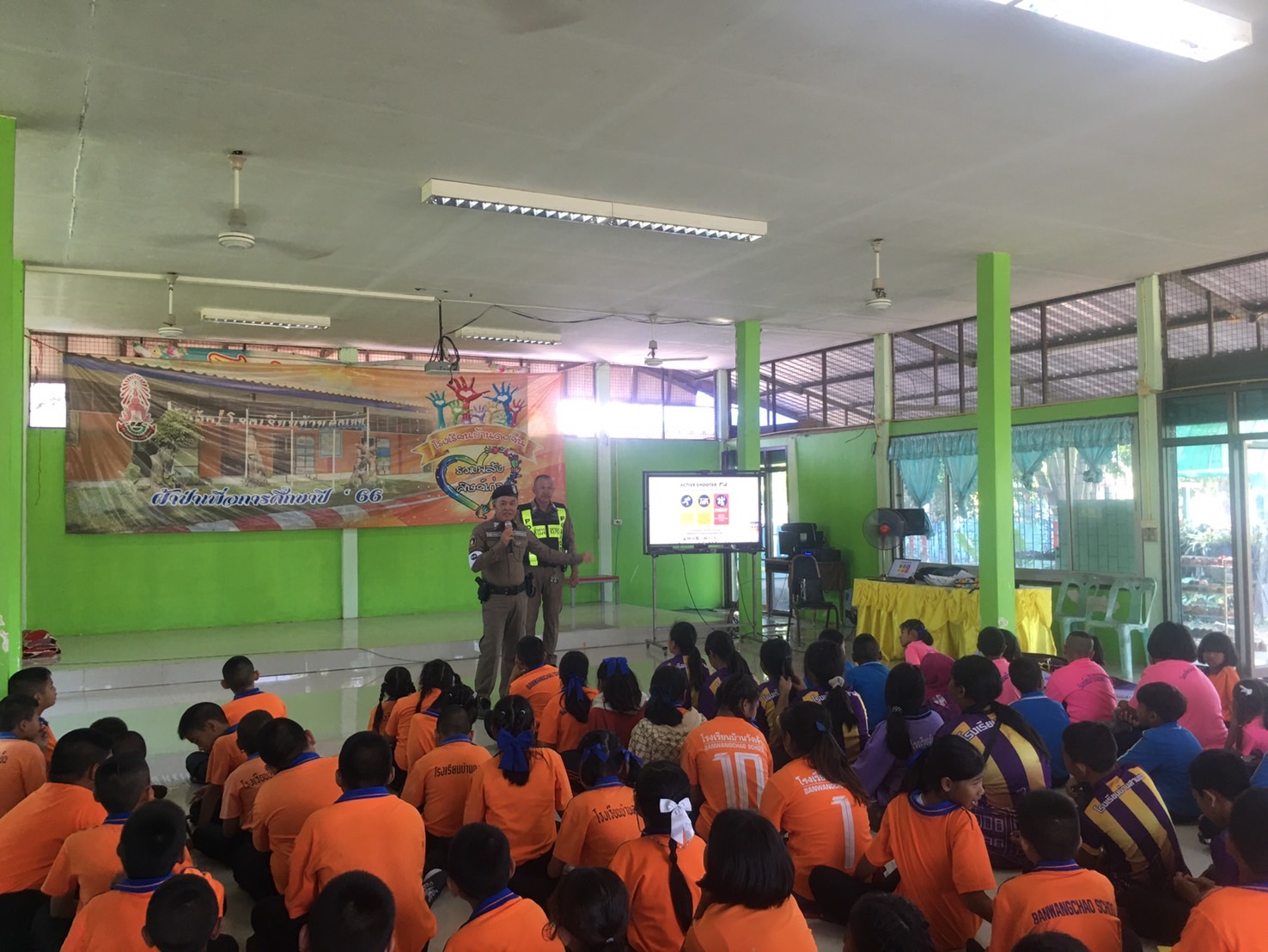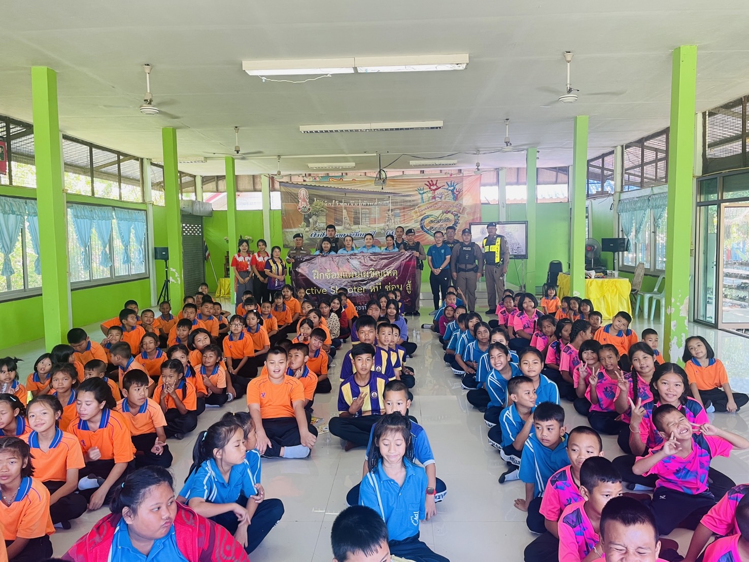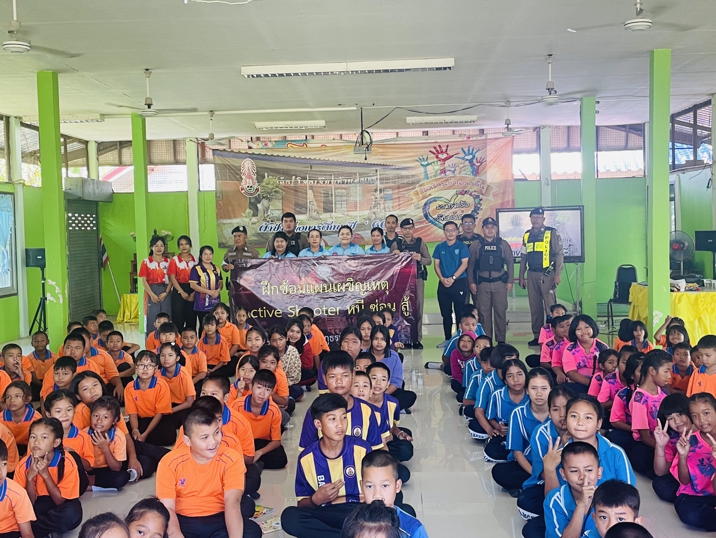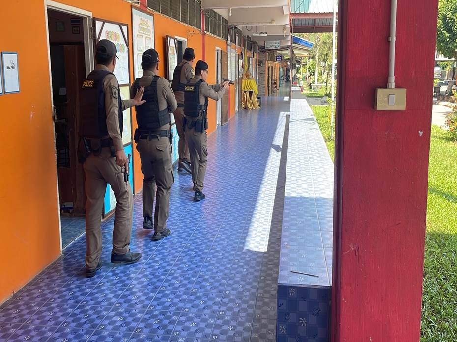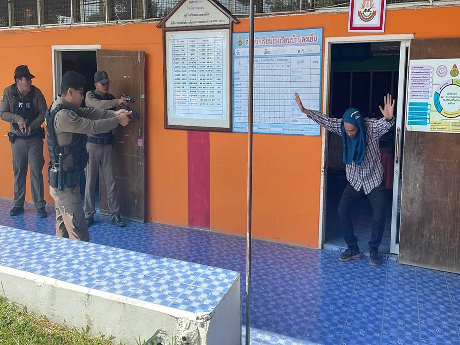 เมื่อวันที่ 14 พฤศจิกายน 2567 เวลา 09.00 น. ภายใต้การอำนวยการของ พ.ต.อ.ชาติพล ใจคำสุข ผกก.สภ.บึงสามัคคี, พ.ต.ท.กรพิทักษ์ กุศล รอง ผกก.ป.สภ.บึงสามัคคี, พ.ต.ท.เกื้อกูล เหล่ารอด สวป.สภ.บึงสามัคคี มอบหมายให้ ร.ต.ต.ฤทธิพงค์ สุระสา ปฏิบัติหน้าที่ร้อยเวร 20 สายตรวจรถยนต์ สายตรวจจราจร สายตรวจวังชะโอน และสายตรวจตำบลเทพนิมิต ร่วมกับคณะครูโรงเรียนบ้านดงเย็น, โรงเรียนอนุบาลบึงสามัคคี, โรงเรียนบ้านโนนพลวง, โรงเรียนบ้านวังเจ้า, โรงเรียนบ้านสามขา โดยมี ด.ต.โกเมนทร์ ภู่เจริญ ผบ.หมู่(จร.) สภ.ขาณุวรลักษบุรี บรรยายให้ความรู้และร่วมกันซักซ้อมเเผนเผชิญเหตุ สถานการณ์จำลองเหตุคนร้ายใช้อาวุธปืนกราดยิง / วิธีเอาการเอาชีวิตรอดในเหตุกราดยิง ACTVIE SHOOTER ( หนี ซ่อน สู้ ) ณ โรงเรียนบ้านดงเย็น หมู่ 1 ต.ระหาน อ.บึงสามัคคี จ.กำแพงเพชร