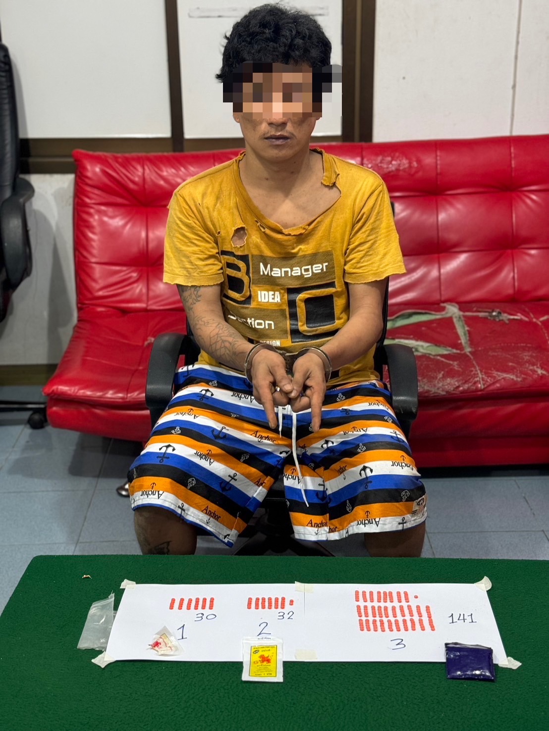 เมื่อวันที่ 15 ตุลาคม 2567 เวลา 16.45 น. ภายใต้การอำนวยการของ พ.ต.อ.ชาติพล ใจคำสุข ผกก.สภ.บึงสามัคคี, พ.ต.ท.สมฤทธิ์ หมื่นหารวงศ์ รอง ผกก.สส.สภ.บึงสามัคคี ชุดจับกุมนำโดย พ.ต.ท.วินัย อ่อนน้อม สว.สส.ฯ, ร.ต.ต.วิชัย รัตนวรสุทธิ์, ด.ต.เฉลิมพร แป้นสุวรณ, ด.ต.จรูญ ชาญเวชศาสตร์, ด.ต.ไพรบูรณ์ ศรีวิชัยลำพรรณ์, ด.ต.สุวิทย์ โพธิ์หวี, จ.ส.ต.พรเทพ ศรีมหาดไทย, ส.ต.อ.สุรเดช กระมล, ส.ต.ท.เทพภรต วงษ์ประยูร, ส.ต.ท.กฤษณะ ทาคำมา, ส.ต.ท.สิริวัฒน์ แก้ววิเชียร, ส.ต.ต.บวรภูมิ สงลา, ส.ต.ต.ก้องกิดากรณ์ จันทร์ศร ชุดสืบสวน สายตรวจเทพนิมิต สภ.บึงสามัคคี ได้จับกุม ผู้ต้องหา พร้อมด้วยของกลาง คือ 1. ยาบ้า จำนวน 62 เม็ด (ล่อซื้อ) 2. ยาบ้า จำนวน 141 เม็ด (ค้นพบ) แจ้งข้อกล่าวหาให้ผู้ต้องหาทราบว่า 1) มียาเสพติดให้โทษประเภท 1 (เมทแอมเฟตามีน) ไว้ในความครอบครองเพื่อการค้า 2) จำหน่ายยาเสพติดให้โทษประเภท 1 (เมทแอมเฟตามีน) เพื่อการค้า 3) เสพยาเสพติดให้โทษประเภท 1 (เมทแอมเฟตามีน) โดยไม่ได้รับอนุญาต 4) เป็นผู้ขับขี่รถขณะมีสารเสพติดให้โทษประเภท 1 (เมทแอมเฟตามีน) อยู่ในร่างกายโดยไม่ได้รับอนุญาต ที่ริมถนนสายบ้านระหาน-ชายเคือง ม.4 ต.วังชะโอน อ.บึงสามัคคี จ.กำแพงเพชร นำตัว ผตห.พร้อมของกลาง ส่งพนักงานสอบสวน สภ.บึงสามัคคี ดำเนินการต่อไป