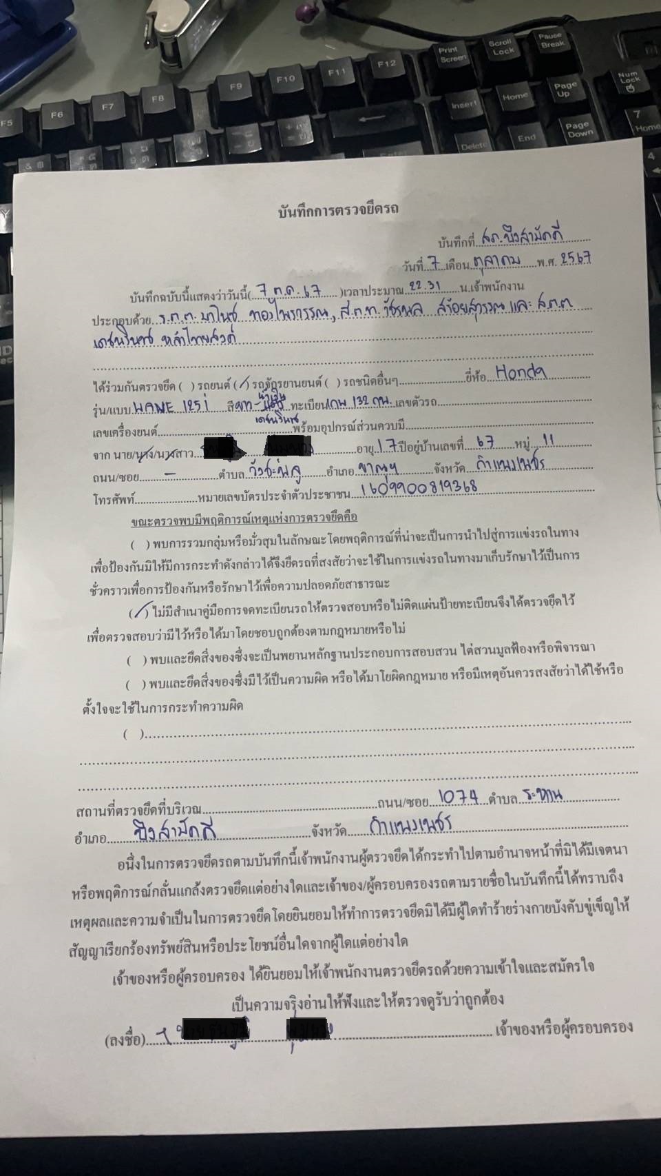 - ตรวจยึดรถ 1 คัน